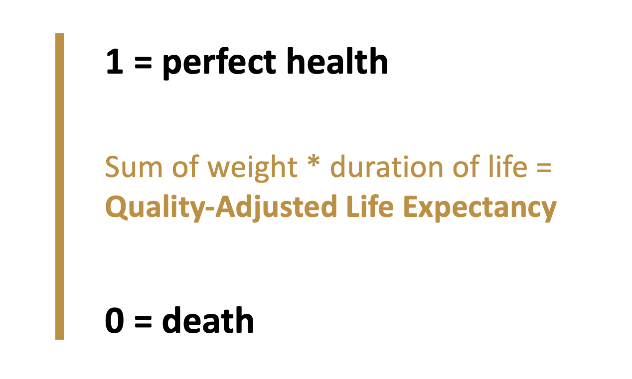 Similar to QALYs, two dimensions of interest: